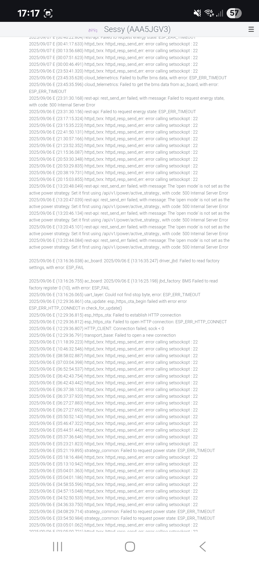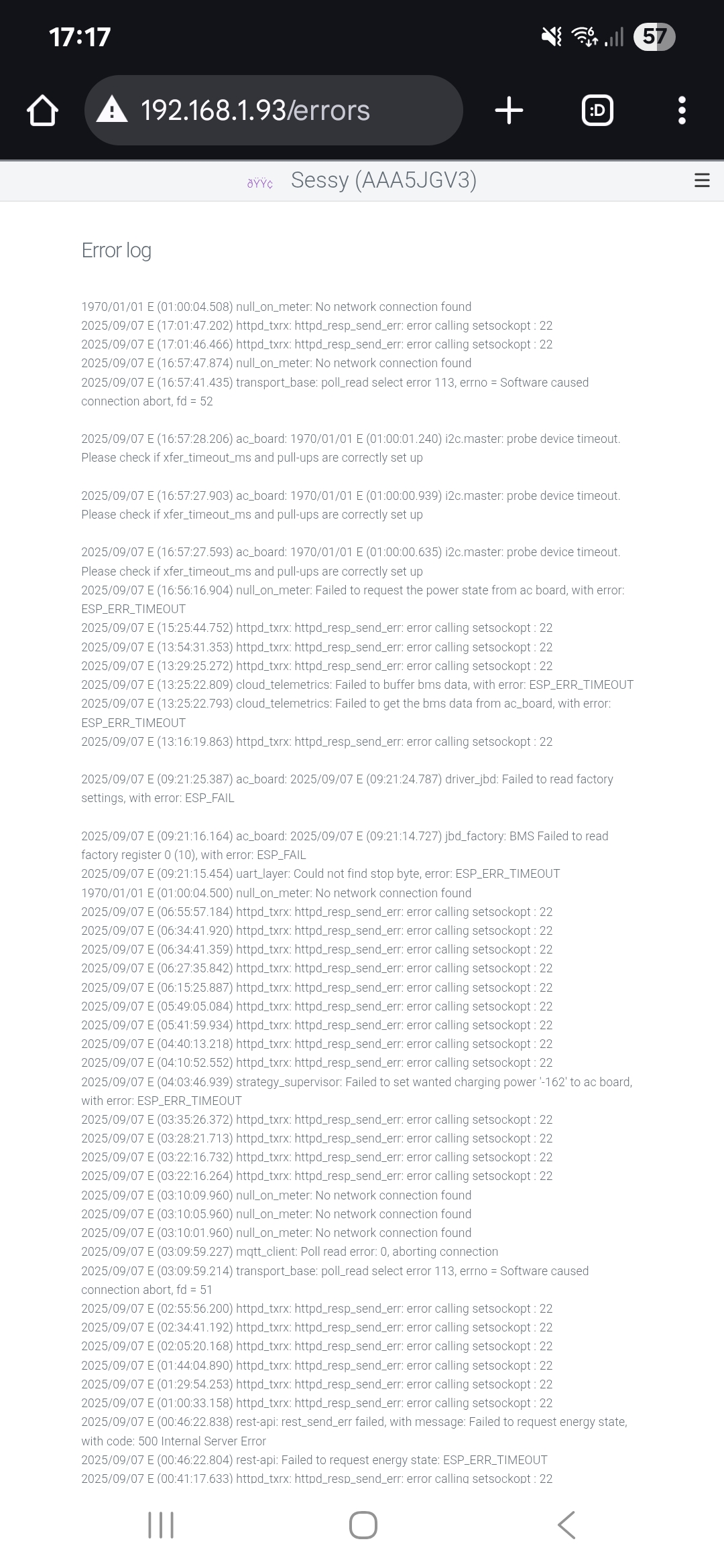 Ik heb inmiddels meerdere keren met sessy contact gehad alleen volgens hun werkt alles. Omdat de storingen zich maar een paar uur duren. Inmiddels werkt de sessy al 3 dagen(nachten) niet. Ik heb hem ook maar op de NOM strategie gezet om mijn aansturing via de API uit te sluiten.